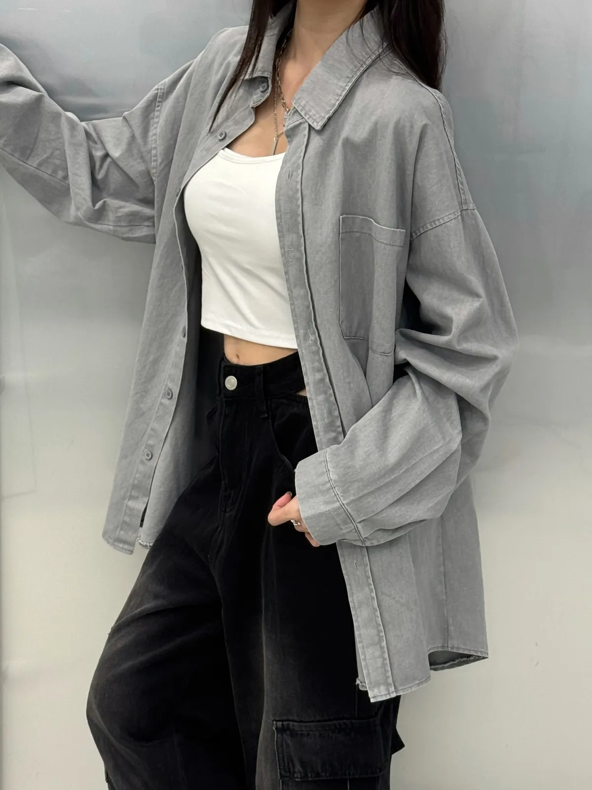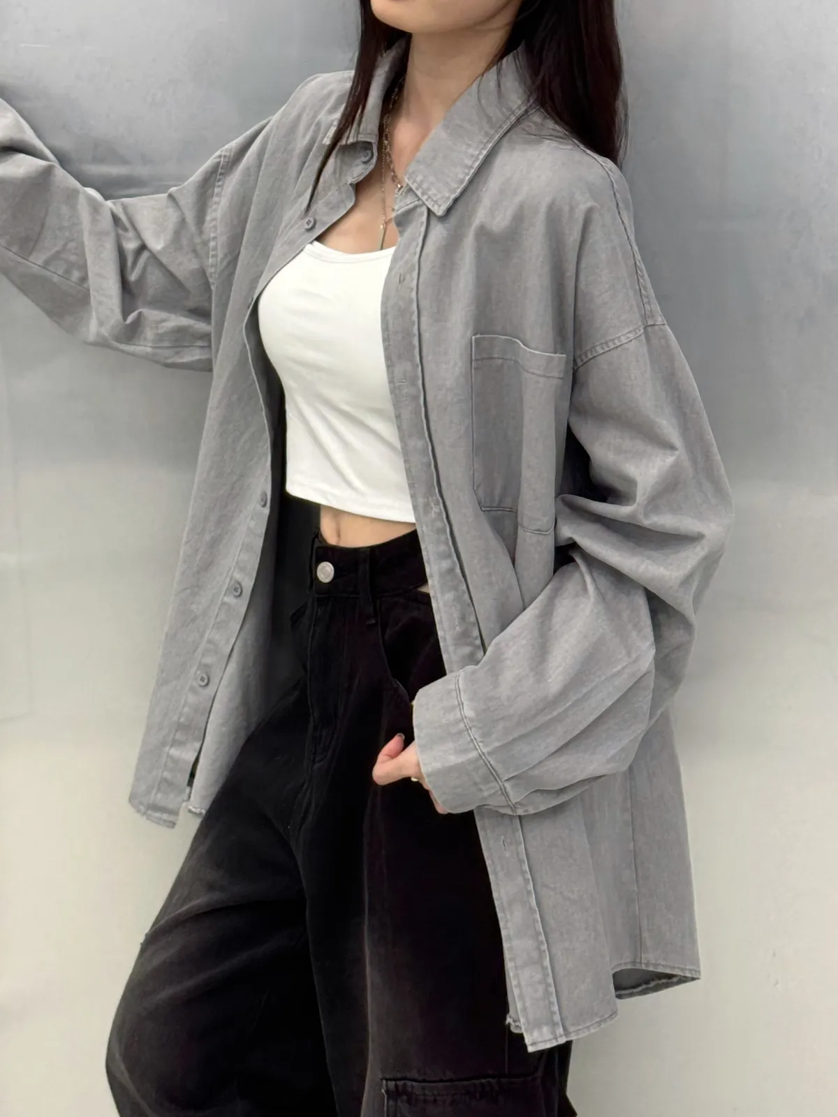 | 商品說明📝 | 面料:複合棉 厚度:適中(有挺度) 彈性:無 版型:長版襯衫 建議尺寸:不限身型 | 商品介紹📝 | 質感女孩衣櫃必備不易皺好照顧 單穿當襯衫 or 當外套罩件都可以 四季都能搭配( ੭ ˙ᗜ˙ )੭ 小個子也能當洋裝想要穿出日常質感風 這件真的可以收