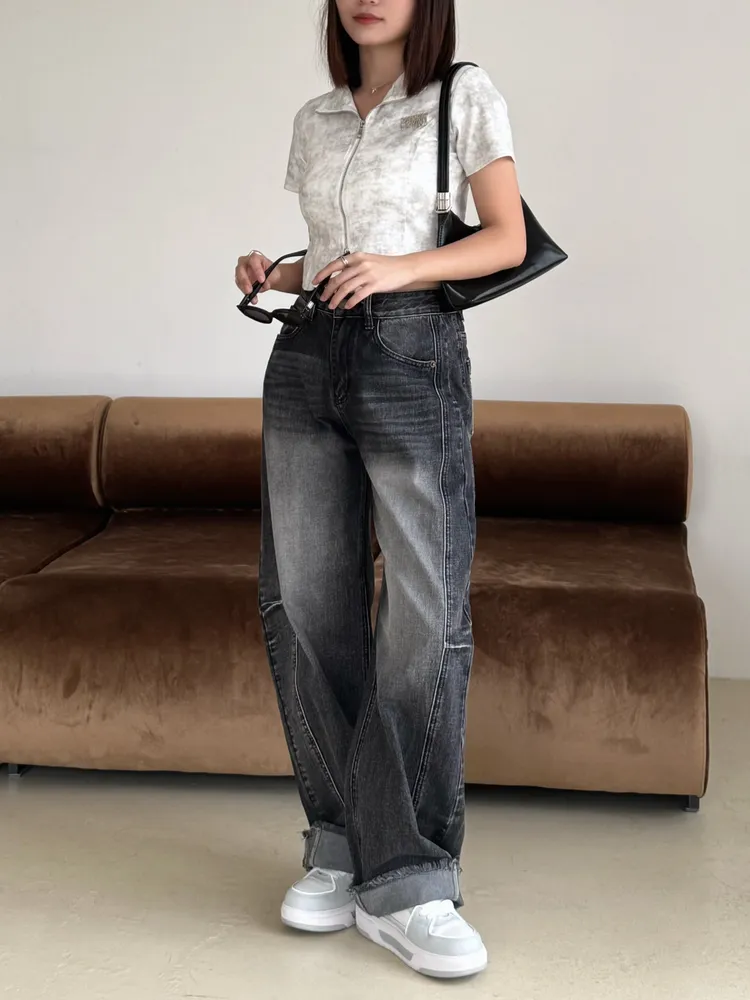 不收邊褲腳打造自然復古感