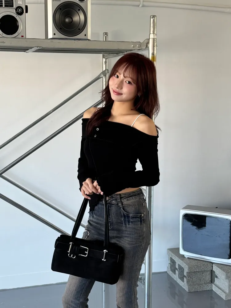 外層是微露肩不對稱剪裁設計