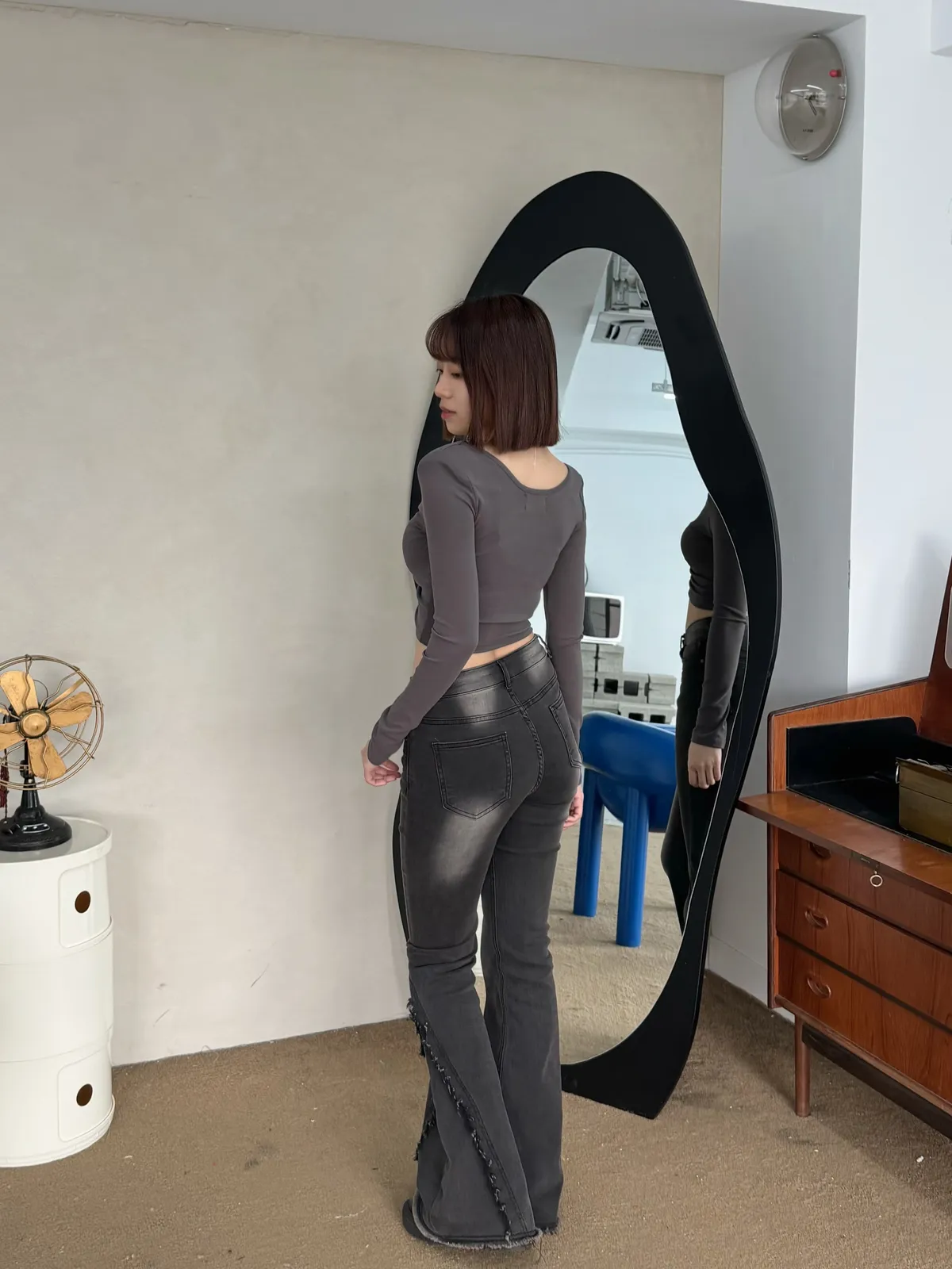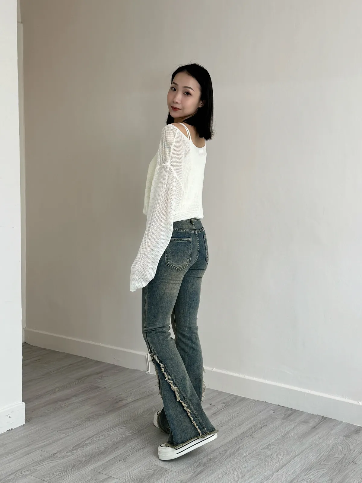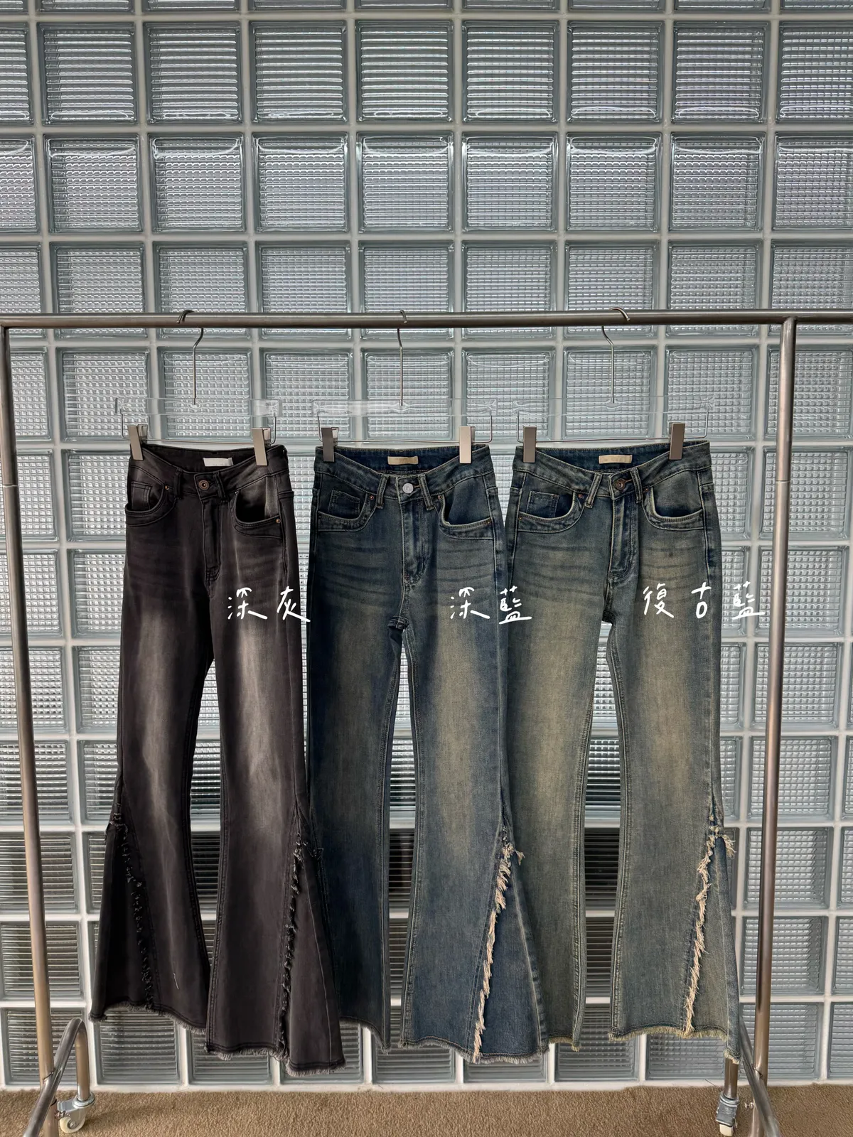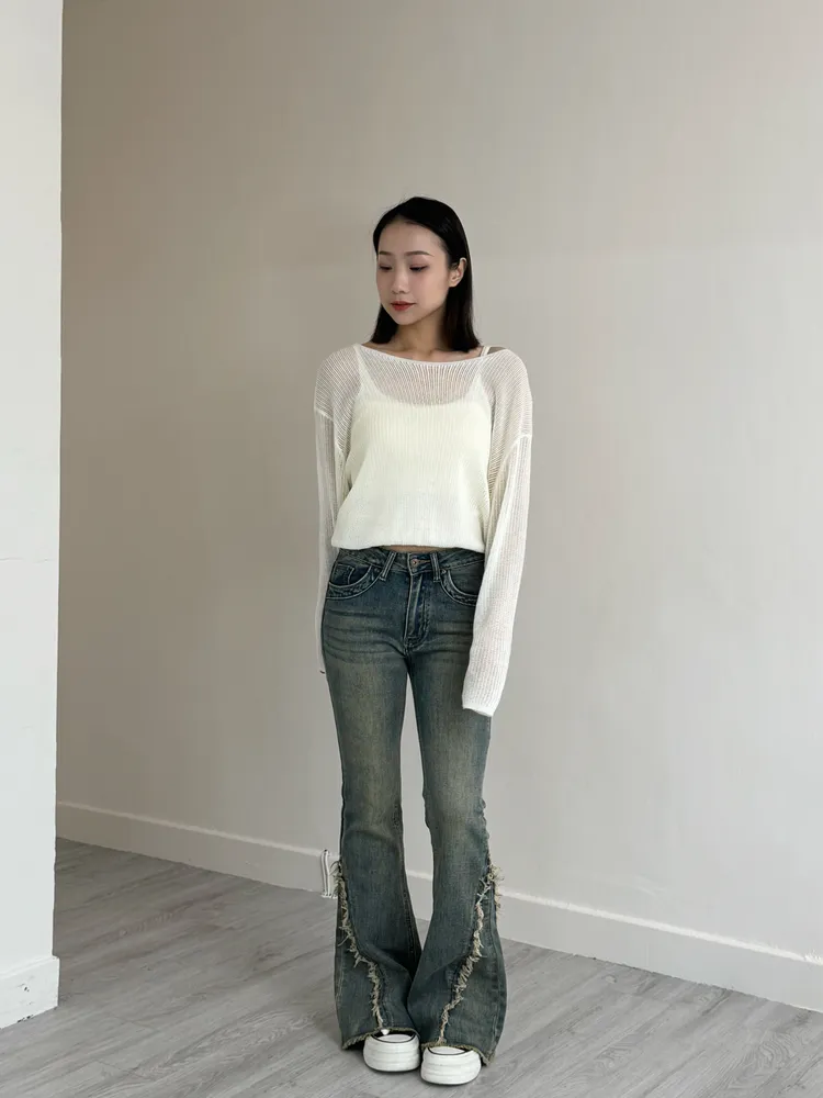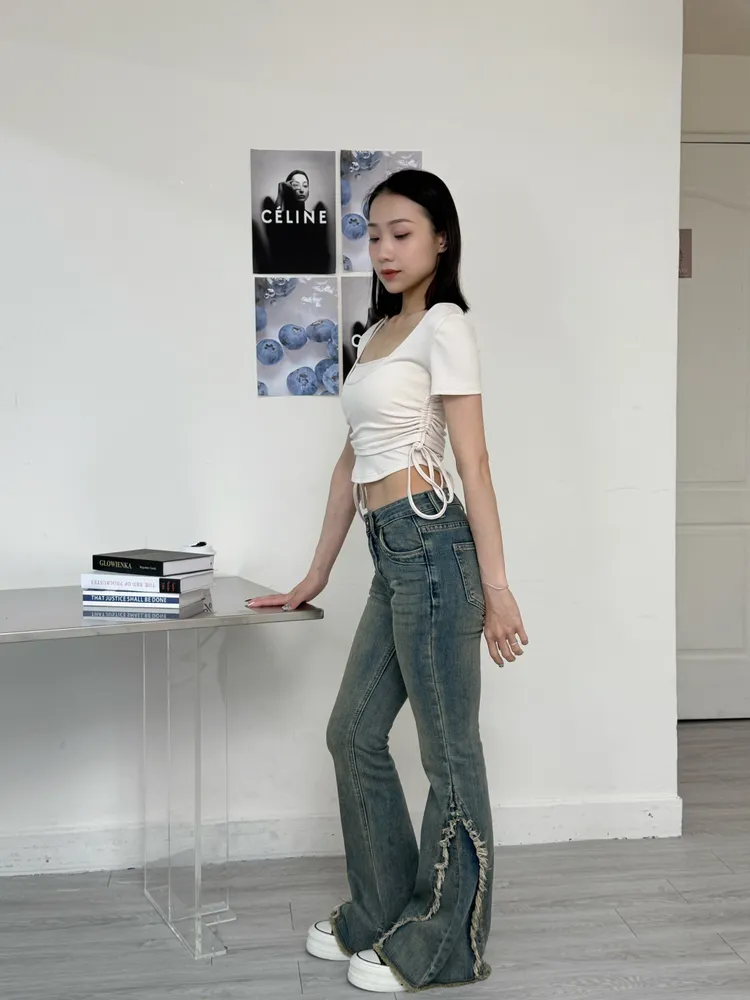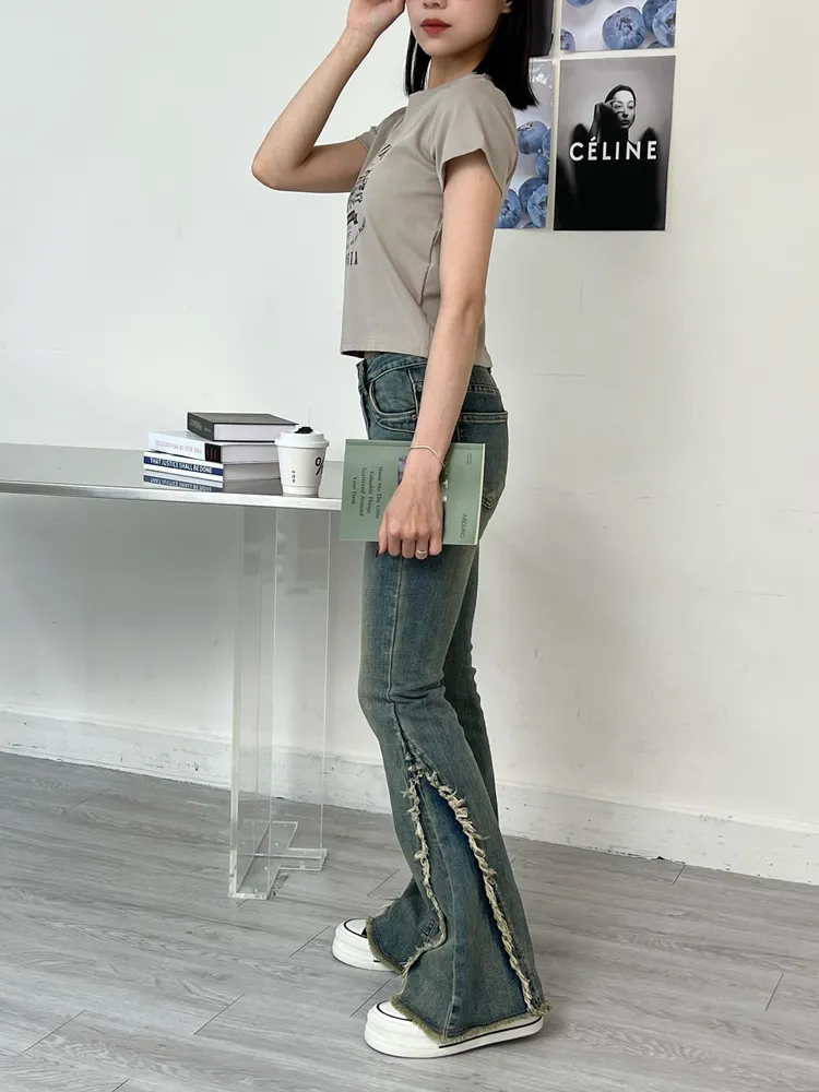 版型:中低腰、喇叭褲