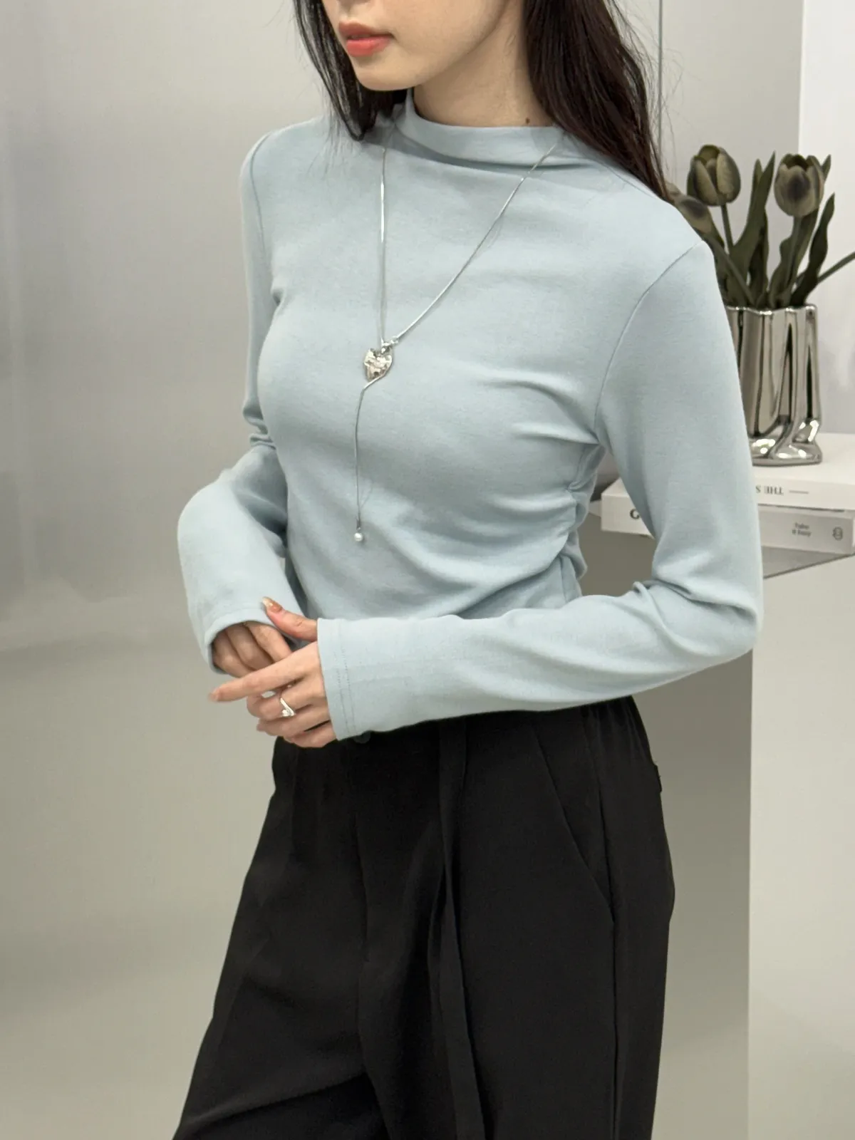 版型:立領、側抓皺